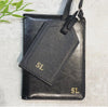 •Personalised PU leather luggage tag and passport holder, hotstamped with monogram lettering.